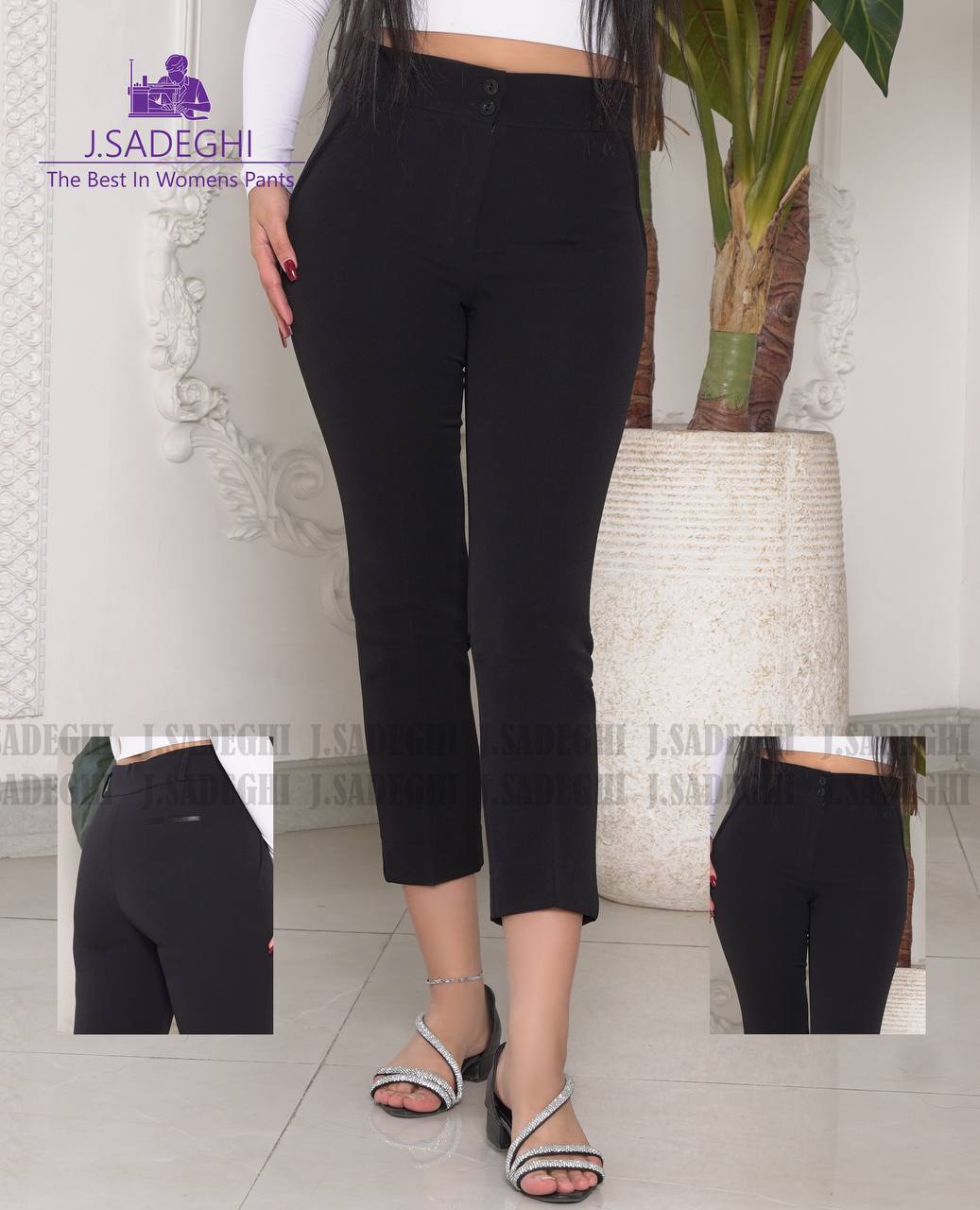 شلوار راسته زنانه قد ۹۰ چاک‌دار از پارچه مازراتی ایرانی گرم ۴۰۰ رنگ مشکی عمیق