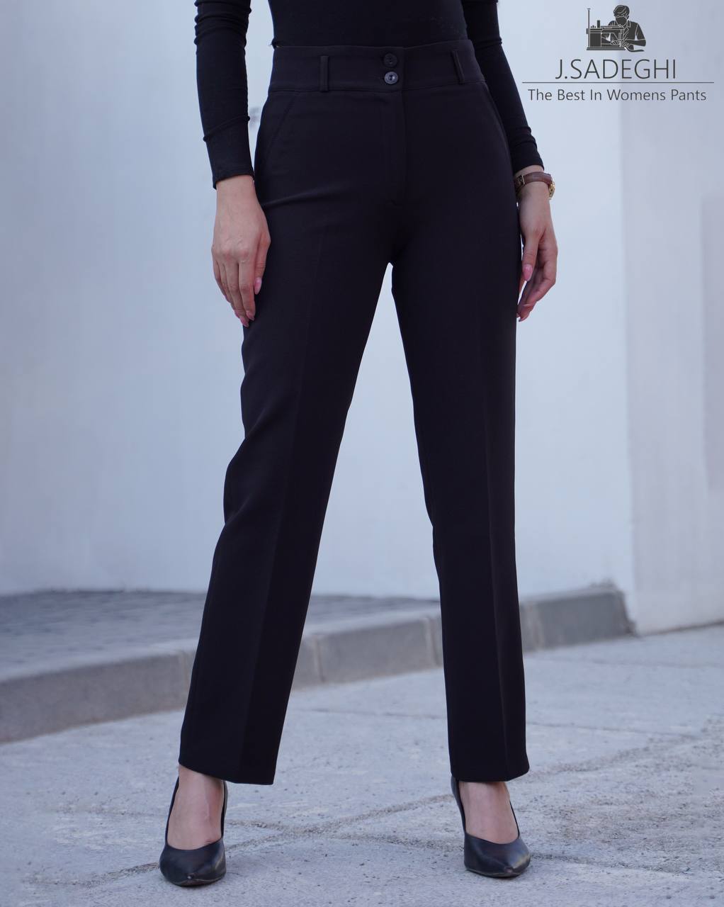 شلوار راسته زنانه قد ۱۰۰ از پارچه مازراتی ایرانی گرم ۴۰۰ رنگ مشکی عمیق